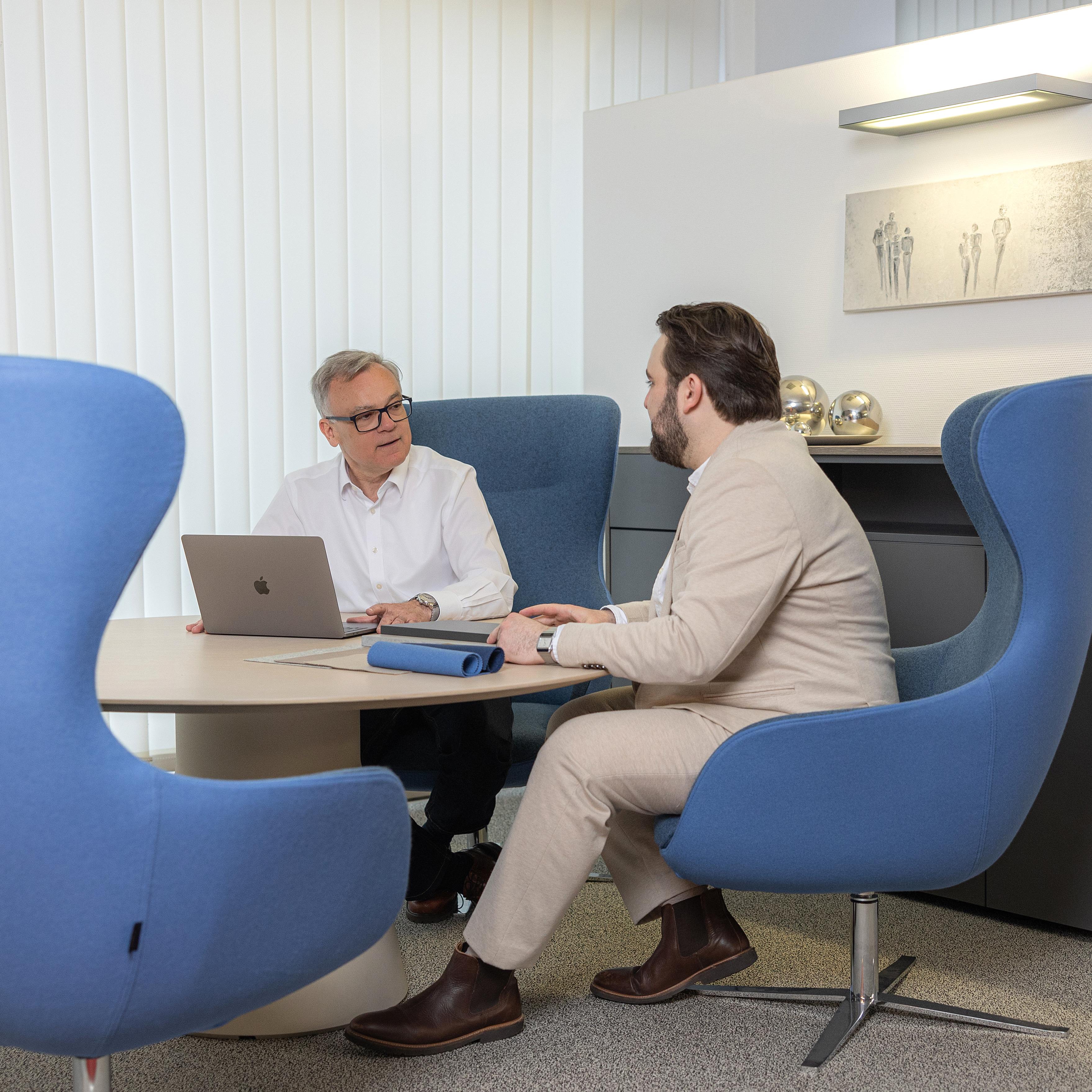 Gerne präsentieren wir Ihnen das individuell für Sie ausgearbeitete Einrichtungskonzept bei Ihnen vor Ort oder laden Sie hierzu in unsere Ausstellungsräume ein, mit anschließender Sitzprobe und haptischen Materialmustern.